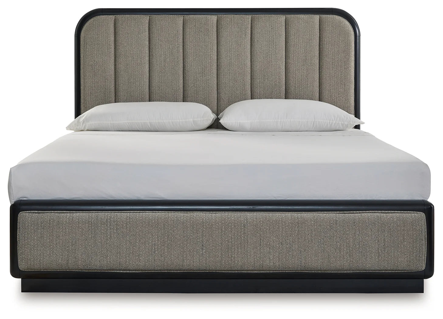 Rowanbeck - Gray / Black - California King Upholstered Panel Bed