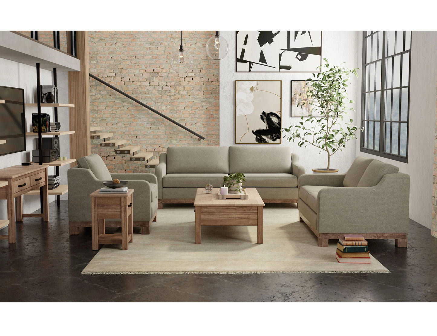 With its chunky, wide silhouette, the Samba collection infuses your living room with a touch of traditional charm. Supported by a sturdy frame crafted from solid pine wood, it rests gracefully on low-profile block feet with a rich brown hue. This sofa comes upholstered in performance fabric and offers a range of color schemes, enabling you to bring your dream living room to life.