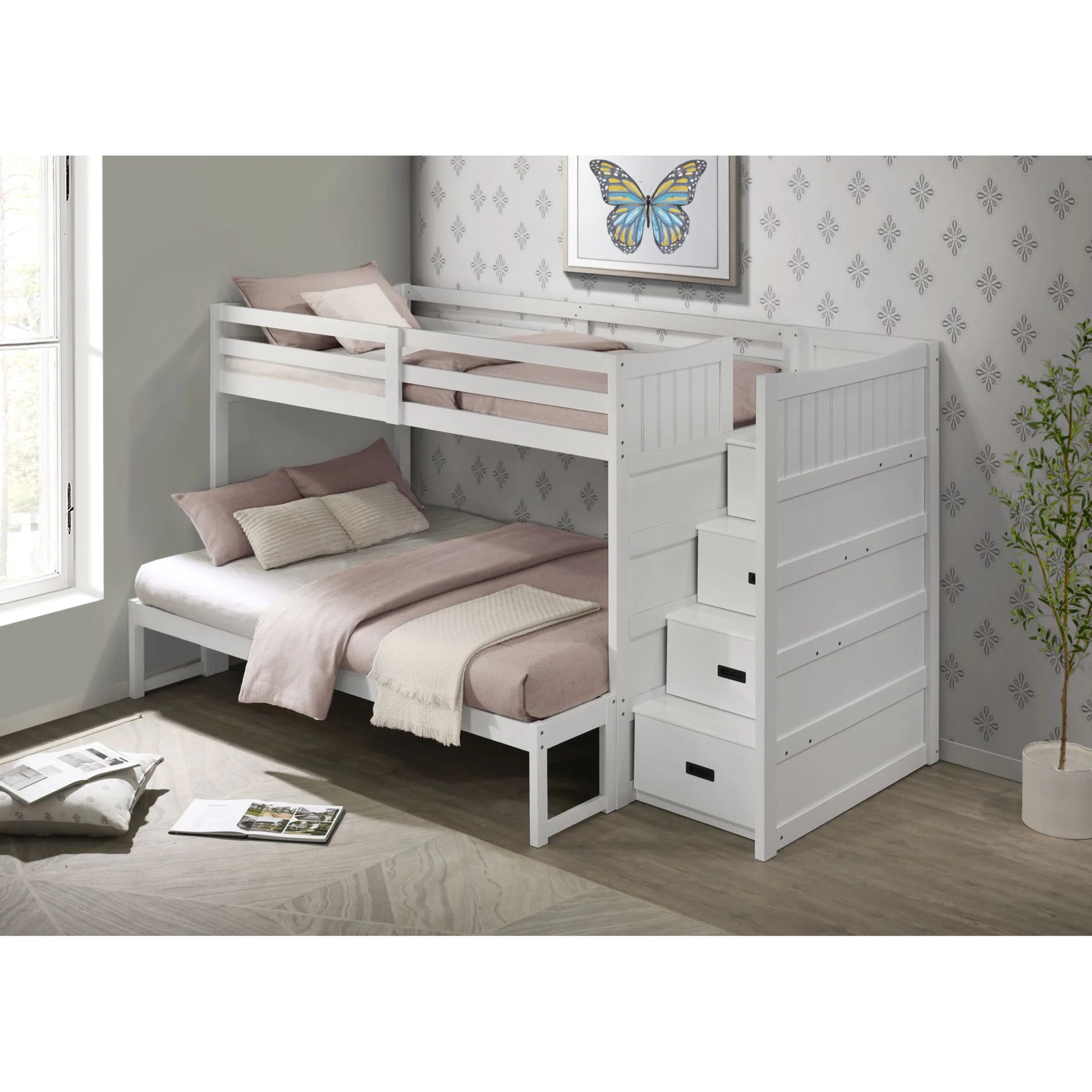 Sami - Twin Over Full Step Bunk with Right HB - White