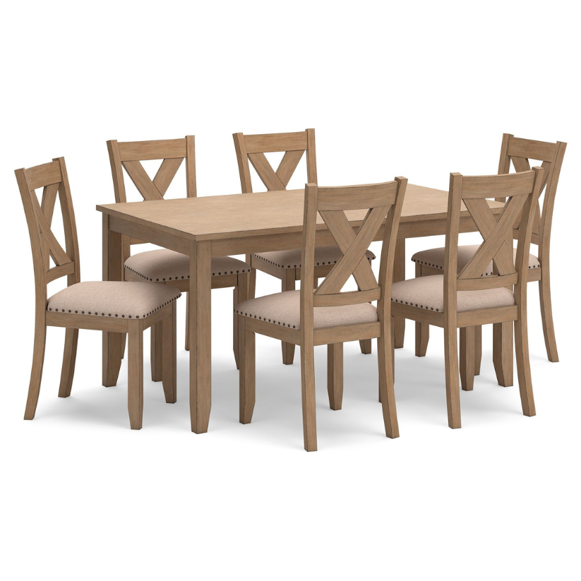 Sanbriar - Light Brown - Rect Drm Table Set (Set of 7)
