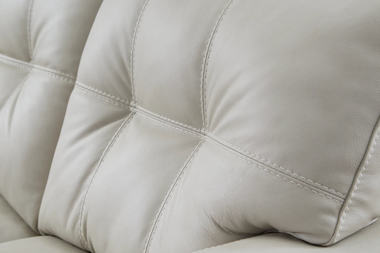 - 100% top grain leather covers inside areas such as the back, seat and arm cushions; skillfully matched faux leather covers the remaining areas