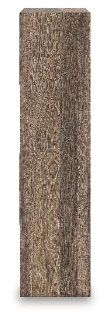 - Weathered brown finish over replicated oak grain with authentic touch