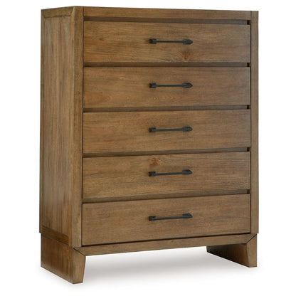 If you appreciate minimalistic style, this chest of drawers is the ideal option. Its soft and simple finish has a laid-back sensibility, blending relaxed contemporary design with a trendy allure. The spacious drawers are accented with stylish metal drawer pulls in a darkened bronze tone. What a delightful addition to your casual-chic decor.
