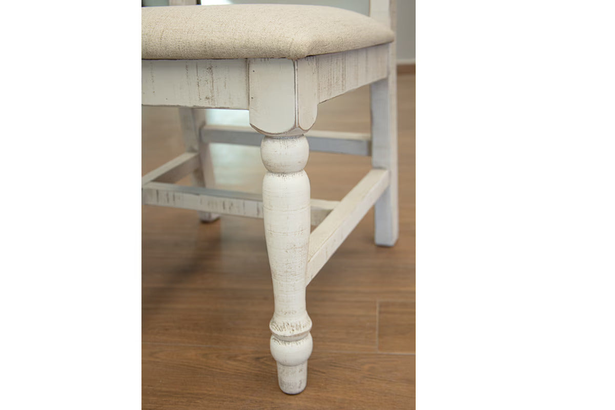 No table is complete without its companion chairs. Featuring a ladder back and turned legs, this chair adds the subtle detail to compliment whatever dining table it sits beside. A comfortable fabric seat will allow you to have a comfortable place to relax and enjoy a nice meal after a long day at work.