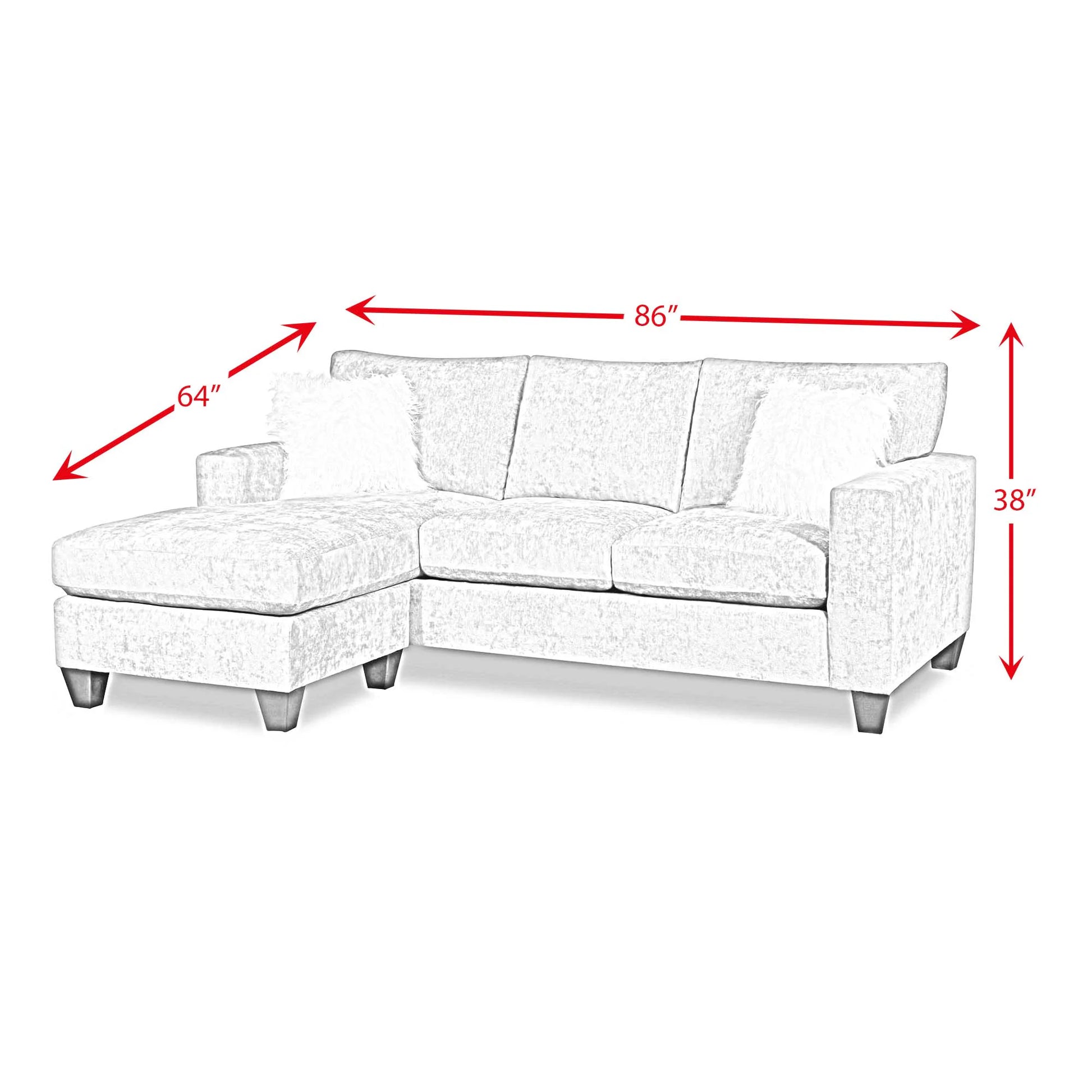 For modern comfort, add this stylish sofa and chaise set featuring an olive undertone to any small living space. The reversible seat cushions and chaise allow you the flexibility to have the chaise on either side of the sofa, ensuring a perfect fit in any space. The overstuffed cushions, supported by a solid wood frame, guarantee years of comfy lounging, while two white faux fur throw pillows add the perfect finishing touch.