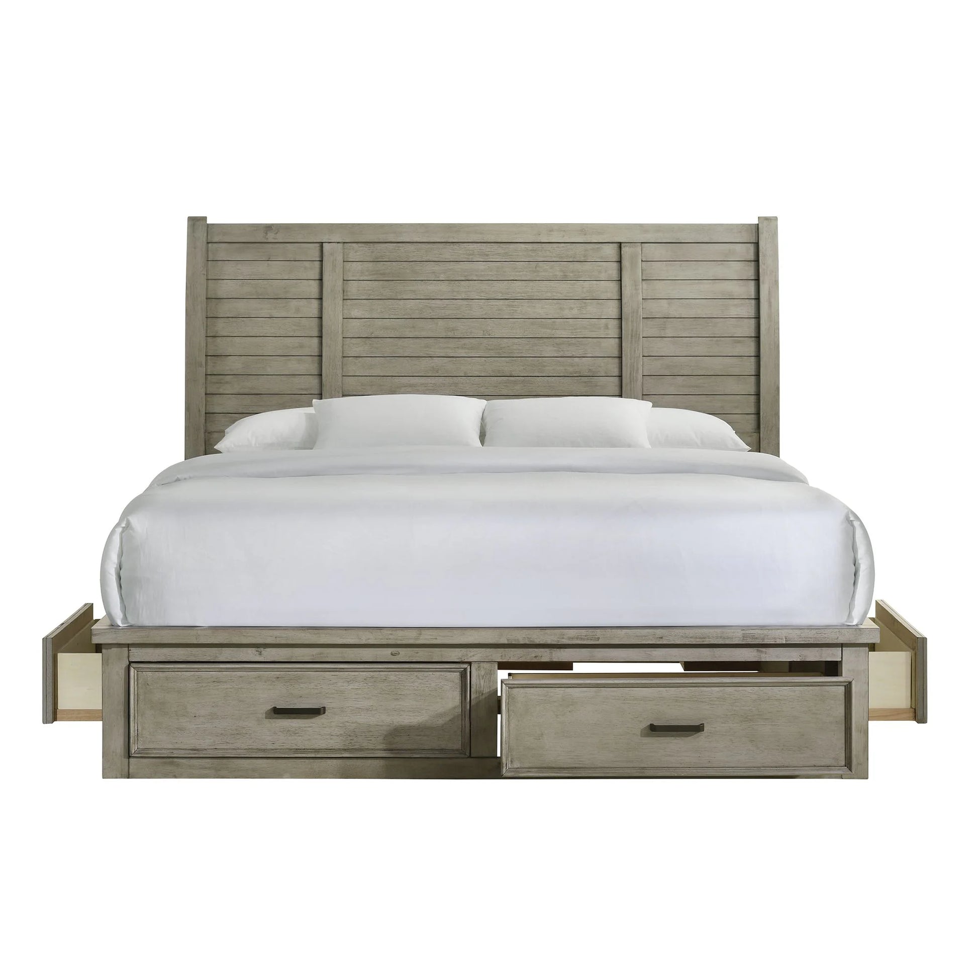 The Sullivan King Storage Bed is more than a pretty piece it's also super functional! This platform storage bed offers two drawers in the front, as well as additional drawers on each side rail, making it easy to find a home for extra linens and blankets. The traditional style pairs beautifully with the bronze drawer pulls. Add this stylish and functional platform storage bed to your home today!