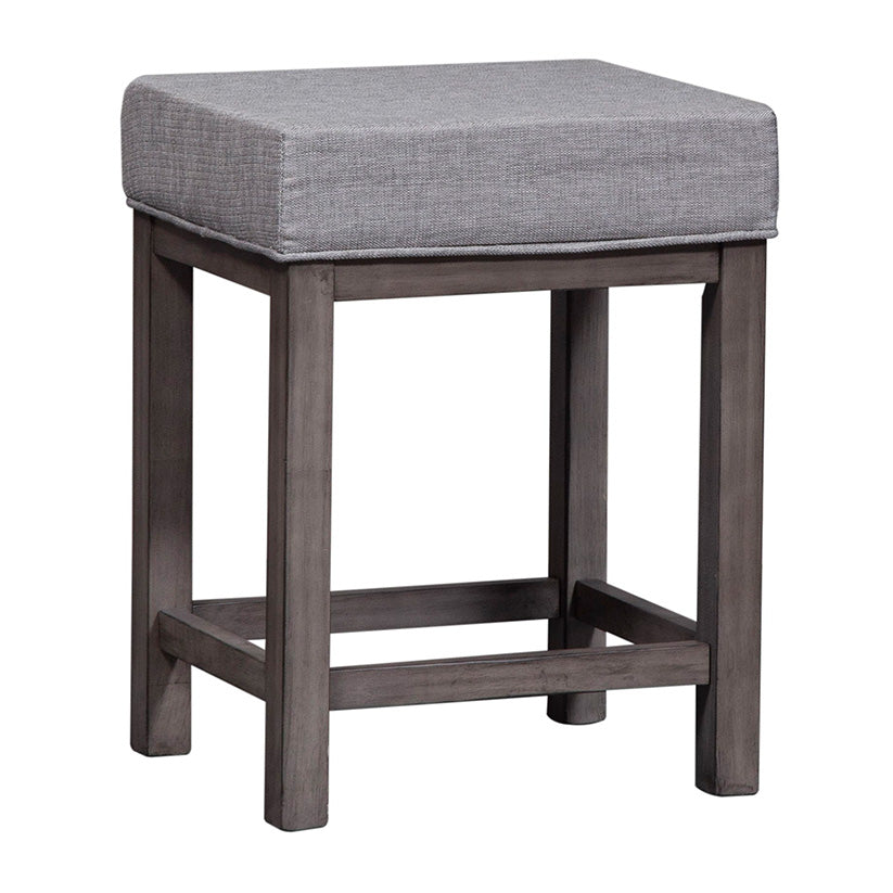 Simple and stylish, the Tanner Creek console stools are constructed of solid rubberwood block legs in a Greystone finish with a padded upholstered seat in a grey tweed fabric. Set includes three stools.
