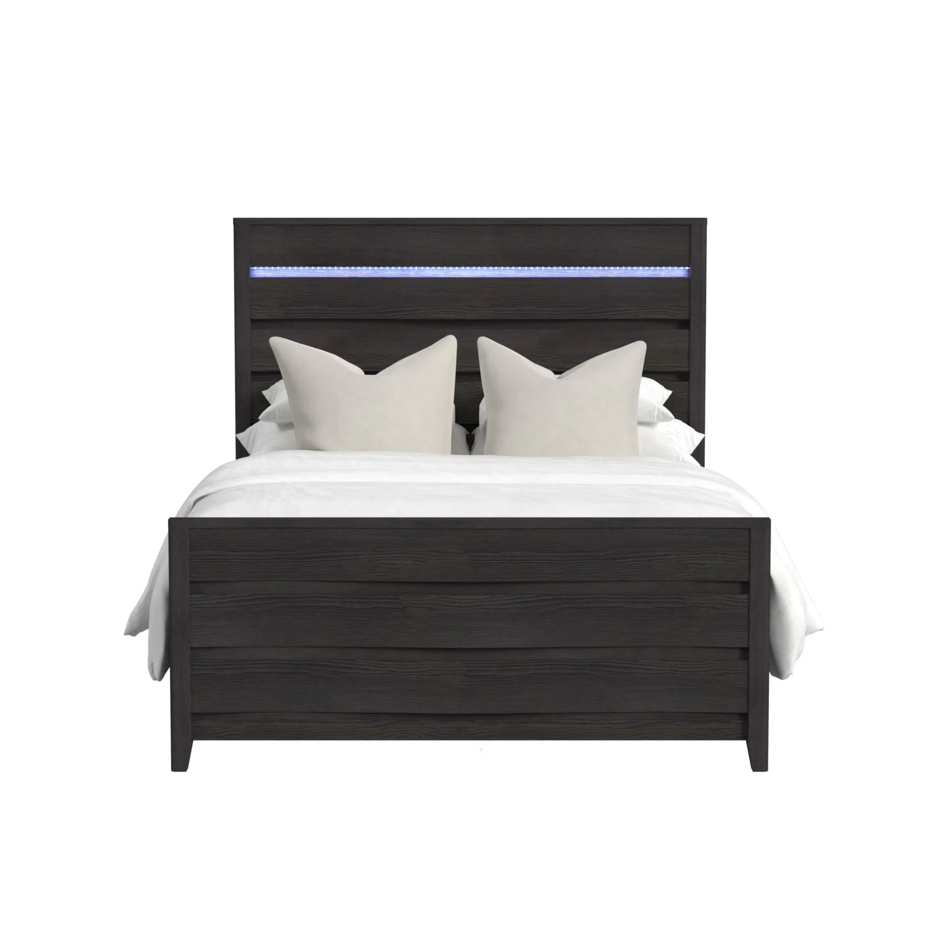 The Tobias Queen Bed with LED is a sleek and modern addition to your home. Designed with gently sloping horizontal slats that create a uniquely rhythmic balance, this piece adds a sense of refinement to any space it occupies. Conveniently integrated LED lighting in the headboard adds modern flair, while slightly beveled legs provide a firm and reliable foundation. For a piece that is sleek and stylish, the Tobias Queen Bed with LED in Black delivers in quality and design.