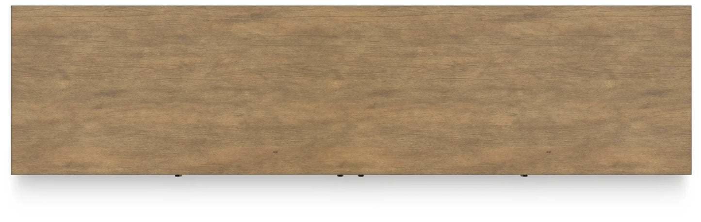 Made for the everyday, this TV stand is a sleek complement to your casual contemporary living room. You’ll love the refined-yet-relaxed vibe of its contrasting medium brown finish and matte black legs. Concealed and glass-front cabinets make media storage a breeze. And for added function, cord management holes throughout the piece make connections easier.