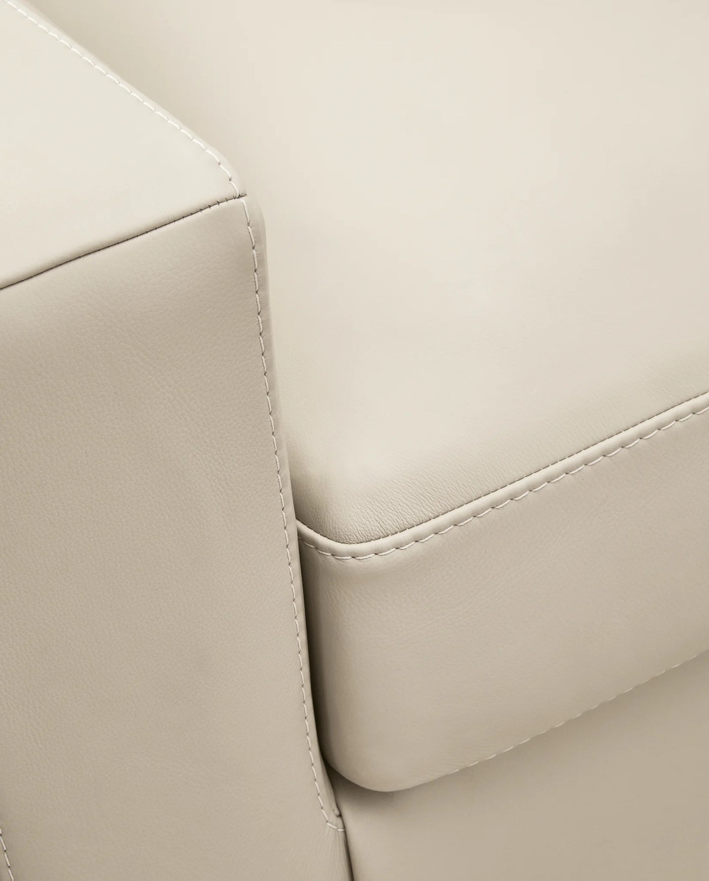- Genuine leather typically covers inside areas such as the back, seat and arm cushions; skillfully matched faux leather covers the remaining areas