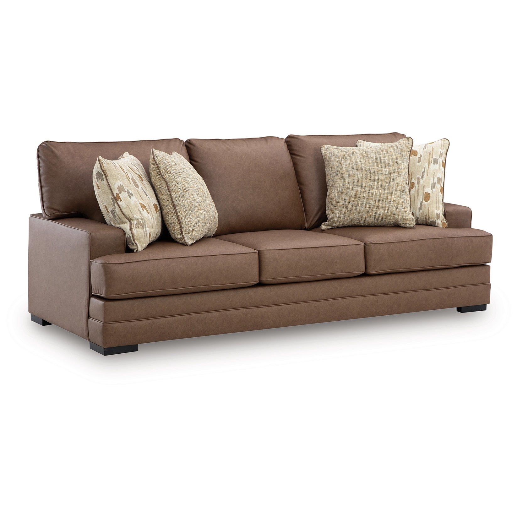 Simple and streamlined, this couch delivers a cozy yet contemporary vibe you’ll love as much as we do. Its extra-roomy size and supple caramel faux leather invite you—and your besties—to have a seat. This piece’s understated elegance and enduring comfort are perfect for entertaining or a relaxing night.