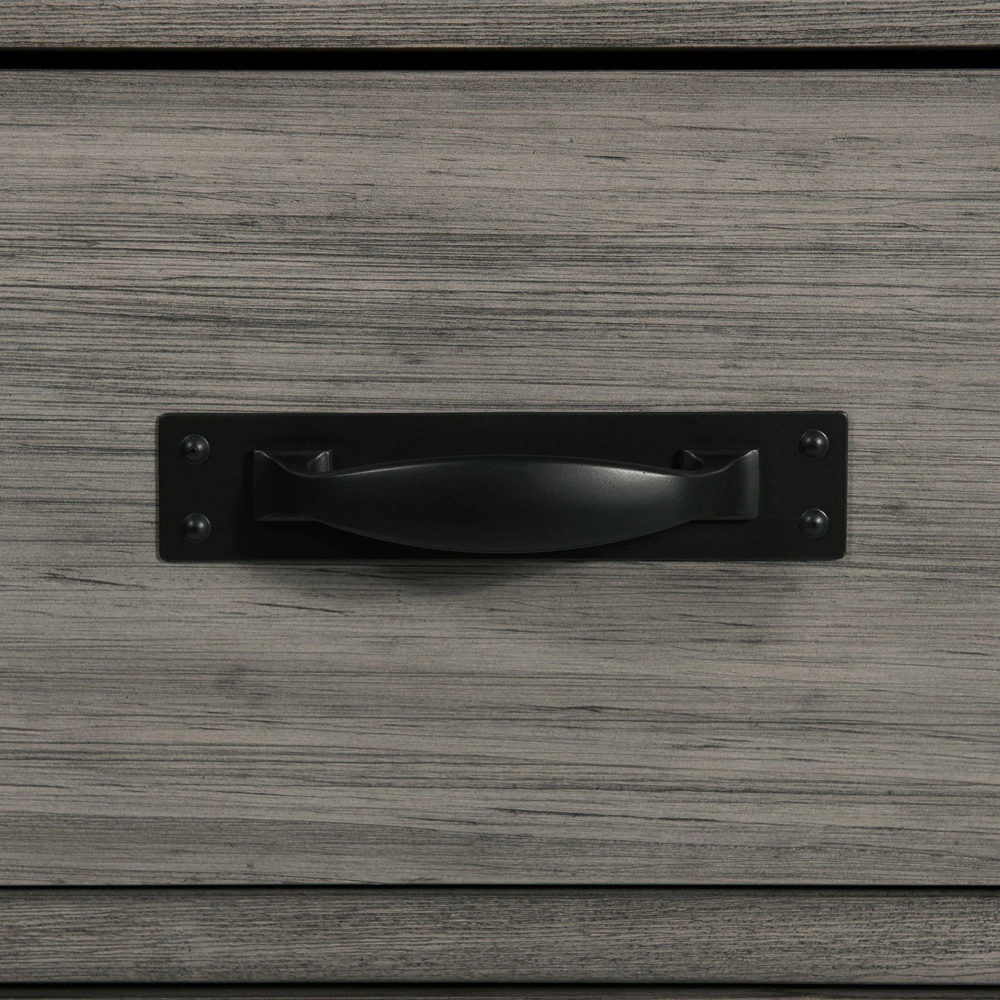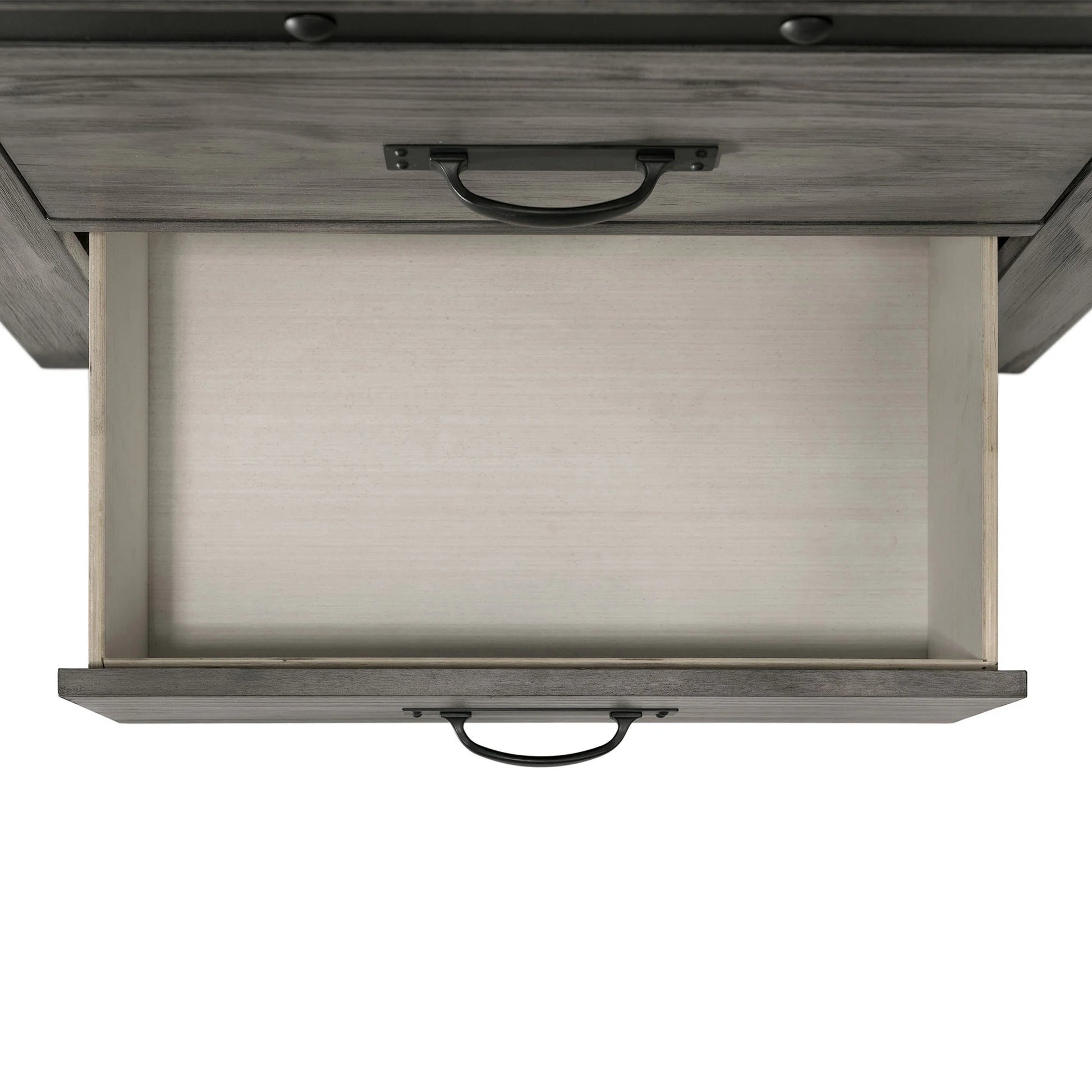 The Wade 7-Drawer Dresser is the ultimate dresser for your home! This bedroom staple comes with seven, spacious drawers; perfect for easily keeping all of your belongings neatly stored away. The bottom drawer features a dust proofing layer to help protect your belongings. The drawer pulls and trim along the top of the chest are both metal with a black finish. Along the trim on the dresser are decorative bolts, adding a little extra flair. This dresser is finished in a neutral gray, making it easy to pair with any existing decor or to find an excuse to completely redo your bedroom. Please note wood grains vary piece by piece and will not look exactly like the picture.