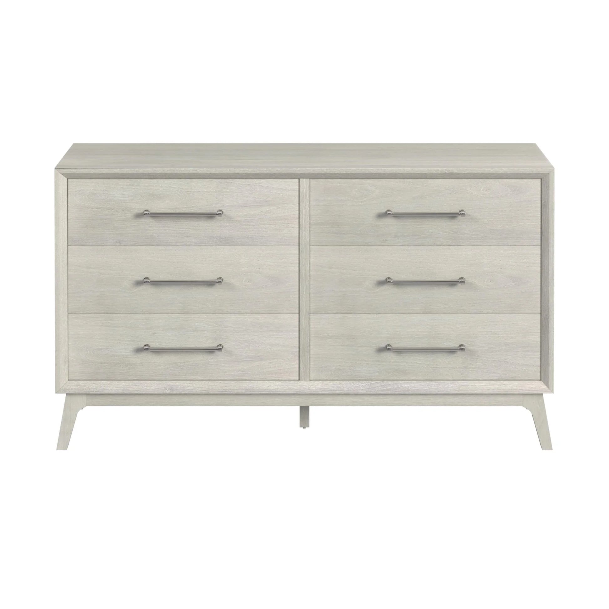 Give your bedroom a fresh, modern vibe with the contemporary Westland 6-Drawer Dresser. The almond-colored wood adds a cozy, natural touch to your space. It features sturdy butt joint construction with corner blocked reinforcements, while the top drawers lined with black felt gives this case piece a classy feel. Included is an anti-tipping kit for extra safety that is easy to install. Upgrade your bedroom with this chic and practical dresser designed to make your everyday life stylish and organized.