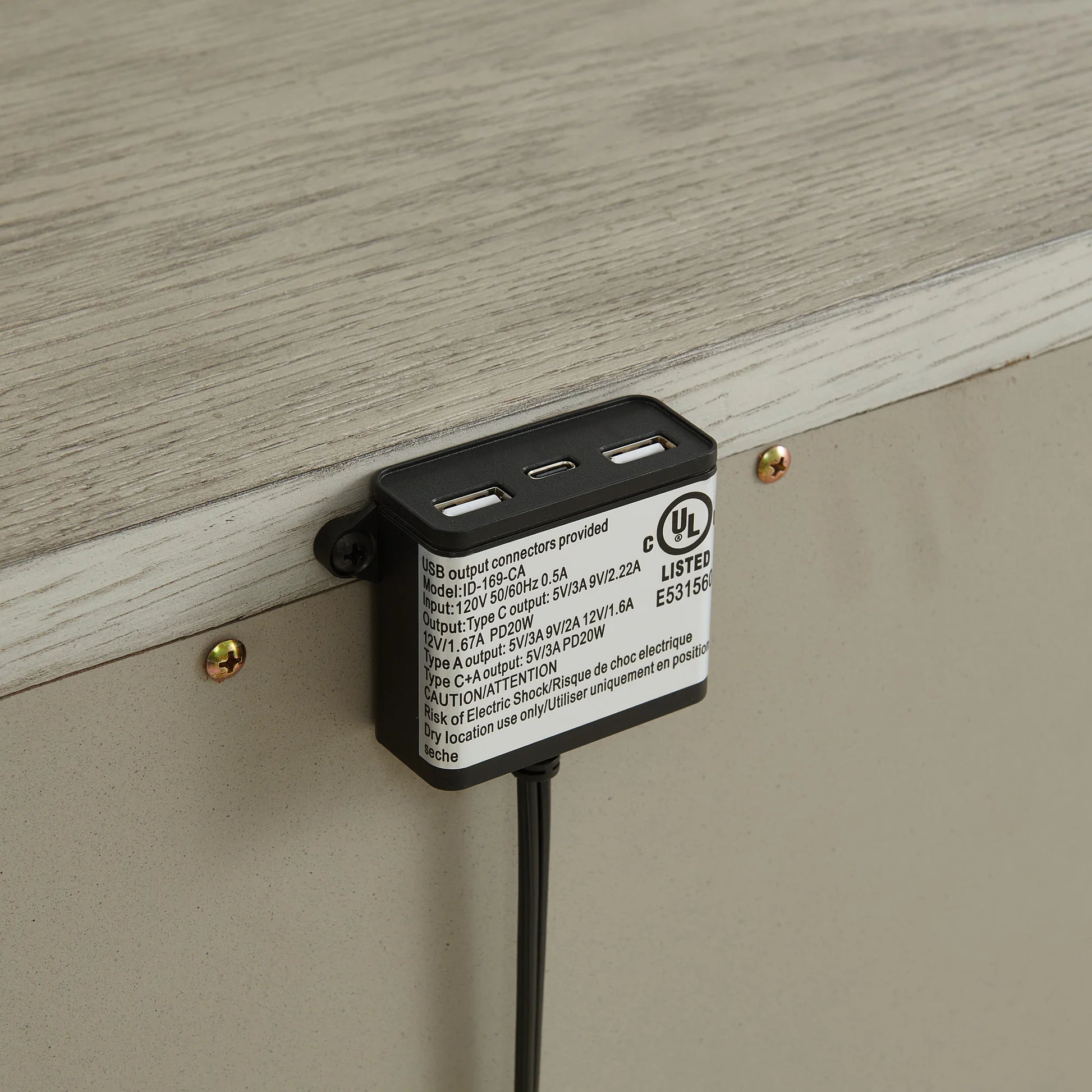 Whit-Ash - 2-Drawer Nightstand With USB - Light Gray