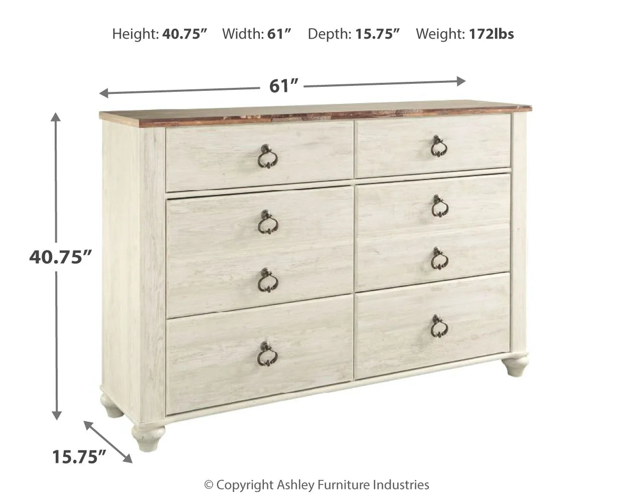 Willowton - Brown / Beige / White - Six Drawer Dresser