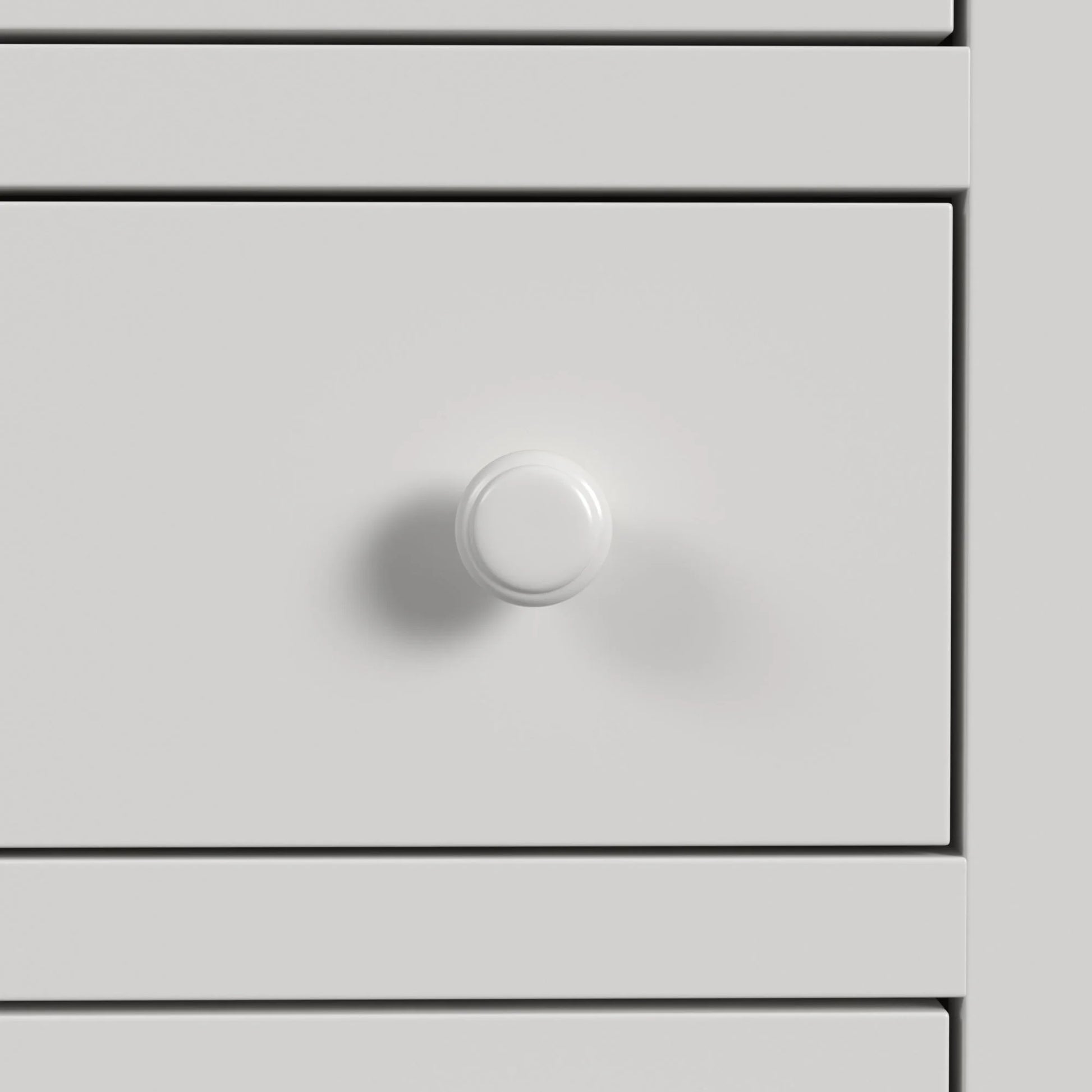 The Wyller Dresser exudes timeless charm with its bright white finish. English dovetail drawers ensure both durability and classic craftsmanship, while ball bearing glides provide effortless, smooth operation. A dust-proofing bottom layer maintains a clean and pristine look, while round knobs add a touch of refined elegance. Combining style and functionality, the Wyller Dresser creates a sophisticated and practical addition to your nursery, providing both beauty and convenience for your growing family.