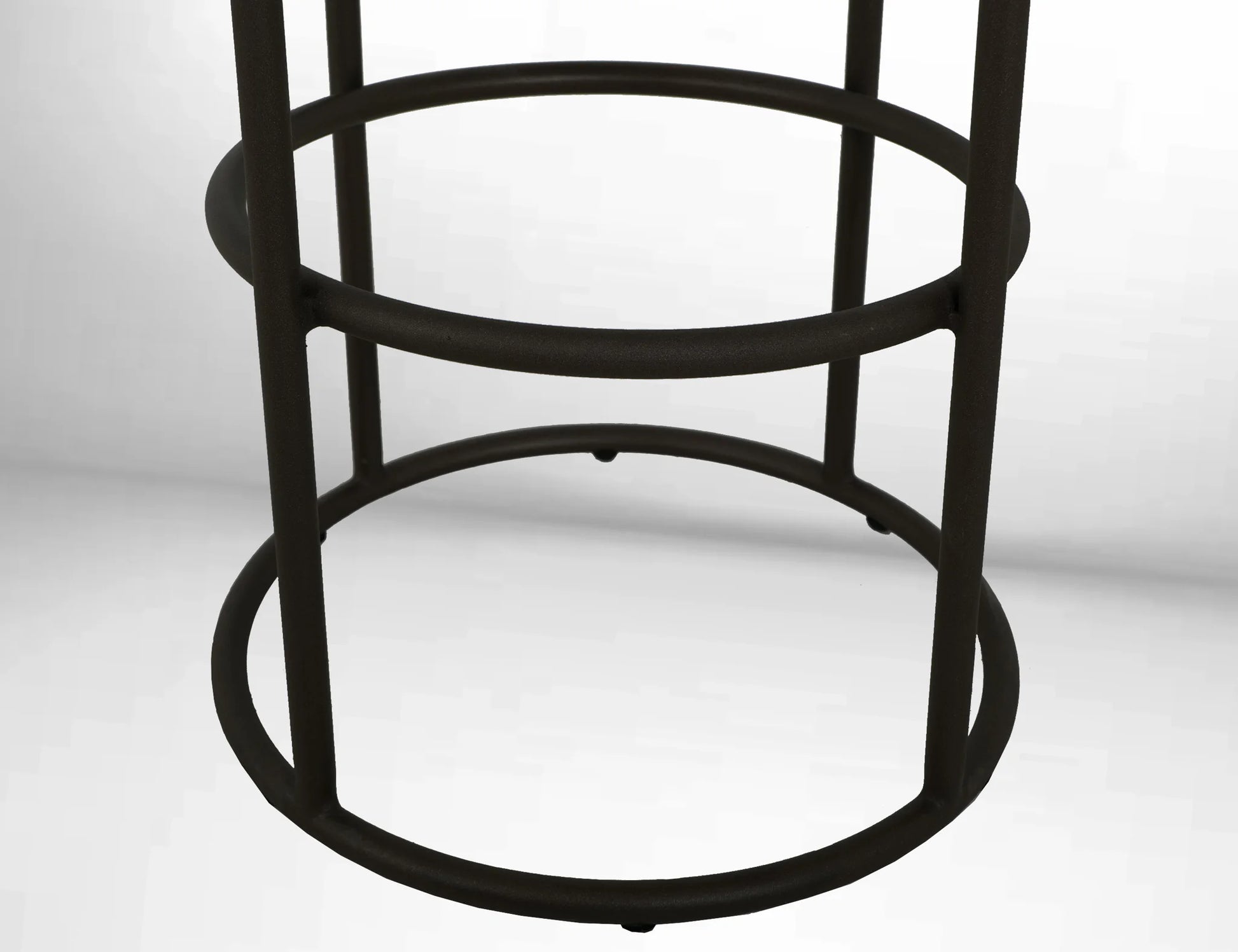 The Xel-Ha collection stool beautifully combines industrial and rustic design elements. It has a sturdy metal frame with a circular base and footrest supports, providing stability and durability. The seat is round and cushioned for comfort, while the backrest features an eye-catching wooden panel, adding warmth and character to the overall design. This versatile stool is ideal for modern, industrial, or eclectic spaces, seamlessly blending style and functionality.