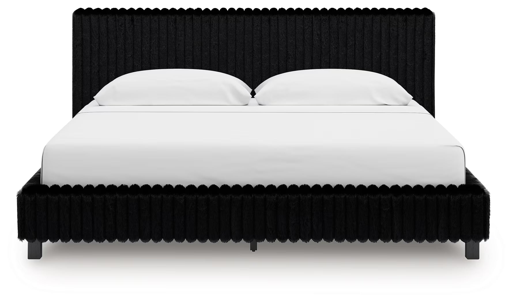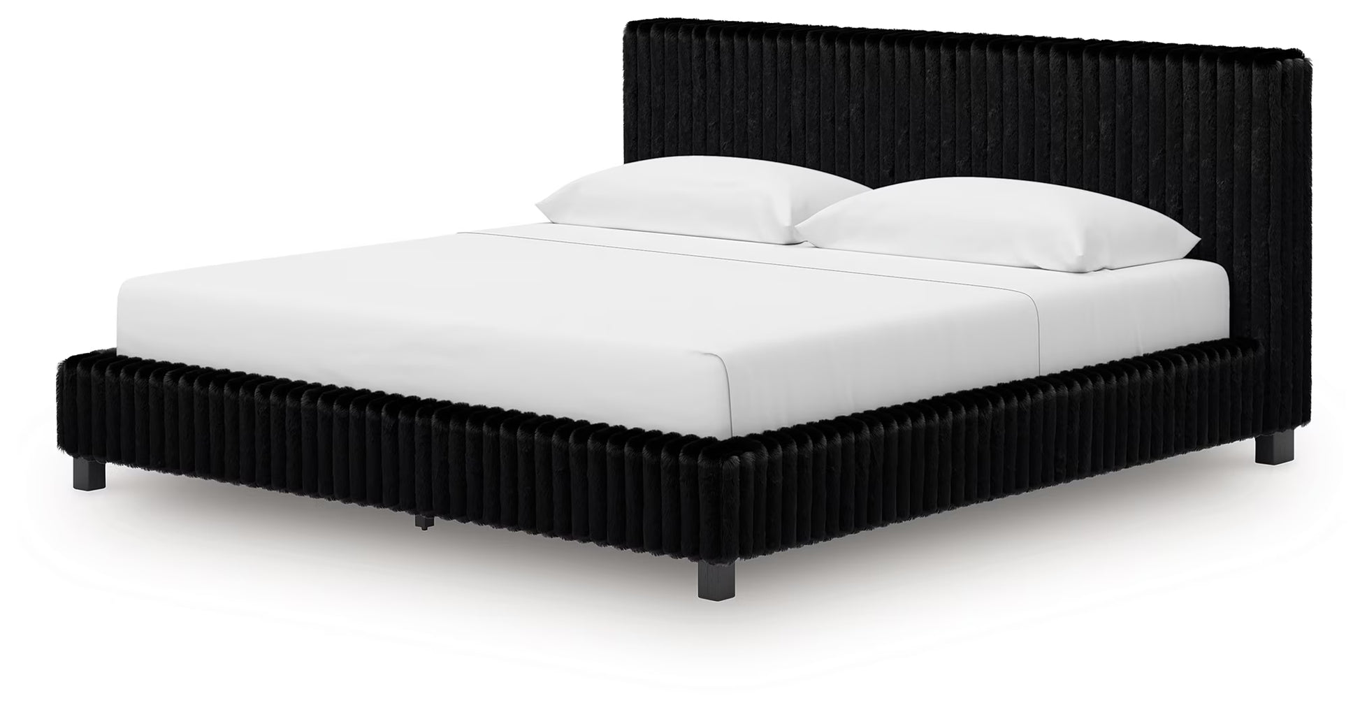 If casual and contemporary are your jam, you’re gonna love this king upholstered bed. Covered from head to toe in a luxuriously soft black corded fabric, it has a chic flair that's sure to wake up your inner sanctum’s style. We’re talkin’ relaxed refinement.